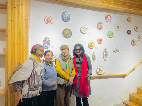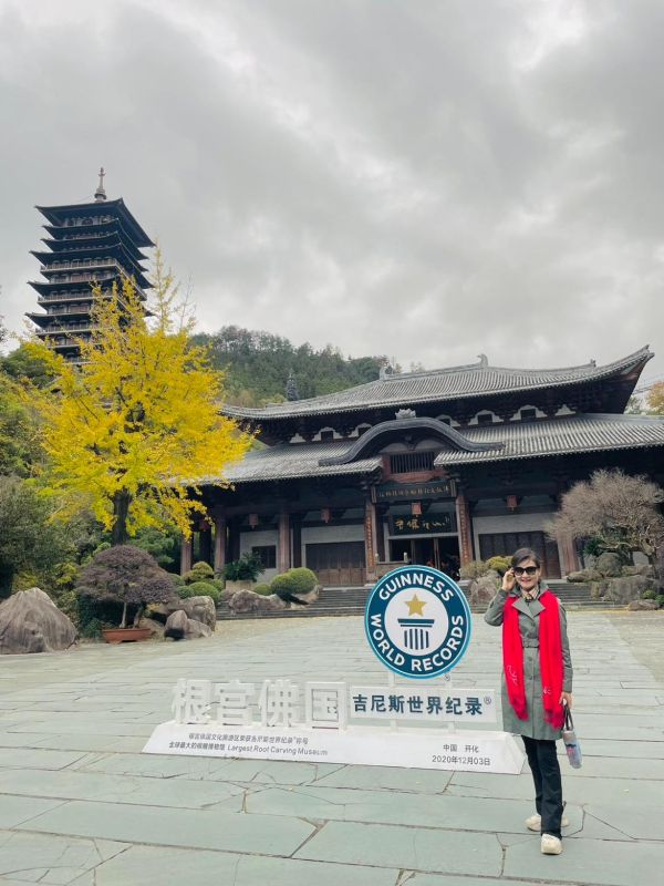 胡一鳳指出,汪瑤的畫作呈現「痛苦洗過後的溫柔」,台灣作家們也非常支持汪瑤的創作,彼此也溫情交流文化藝術,也讓她重新理解文化的意義——文化不只是一門技藝,更是恢復尊嚴與生活能力的力量。 胡一鳳也走訪 開化 文化客廳 ,了解到國家級非遺「開化紙」是以蕘花為原料,紙色微帶粉紅,被稱為「桃花紙」,最大特色是能保存 2800 年。她認為,一張能傳承千年的紙,展現的是文化的自信,也是文明深度的象徵。11月17日下午,胡一鳳造訪震撼宏偉的「根宮佛國」,其以自然形成的樹根為主體創作,被視為大地留下的訊息。其中重達四十噸的「釋迦牟尼成佛根雕」更讓她感受到跨越地理與時間的「宇宙視界」。她表示,枯木成佛、枯根成菩薩的創作,也展現生命轉念後的昇華力量。