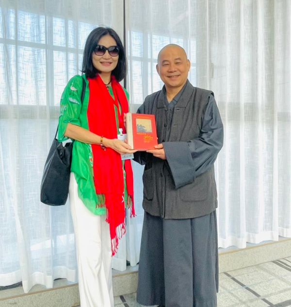 十六年前,然朗法師曾在彌勒大佛開光典禮中護持星雲大師。胡一鳳說,這次相見是十六年善念最溫柔的回應。適逢藥師佛聖誕,胡一鳳並以文字祈願世間病苦解脫、憂苦者得力量、災厄者得平安。她說,在開化這片文明土地上,她深刻感受到文化療癒世界,佛法療癒人心。從下淤村的自然、汪瑤的重生、開化紙的千年傳承,到根宮佛國的宇宙視界,胡一鳳說,她在開化看見: 文明不是抽象,而是一種生命的形式;人人都是文明的根,也是照亮未來的一道光。