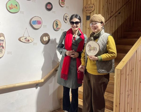 她表示,開化讓她深刻感受到文化並非抽象,而是生命的形態;而佛法與文明在這塊土地上交織,呈現出深具療癒力量的光。胡一鳳於11月17日上午走訪位於錢塘江源頭的下淤村,在微冷秋風、雲光水氣交織的環境中,感受到村落是文明最原始的呼吸。她形容,低刺激的自然環境讓人更能聆聽內心,也看見文明最深的根性。下淤村質樸自在,又展現出當代轉型的韌性,是與自然共振的文明模式。在下淤村的「開化縣殘疾人文化藝術創作銷售基地」,胡一鳳遇見因罕見疾病重建人生的藝術家汪瑤。汪瑤自 2009 年起因癱瘓與語盲、失讀需重新學習語言與肢體記憶,最終以左手重新開始創作。