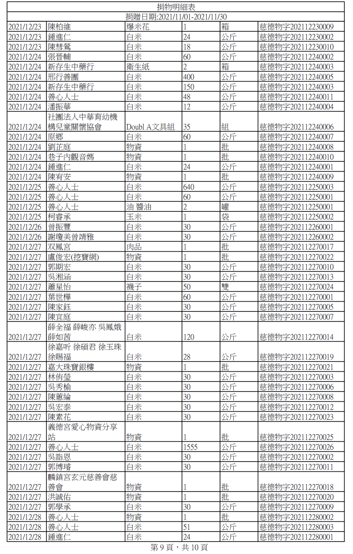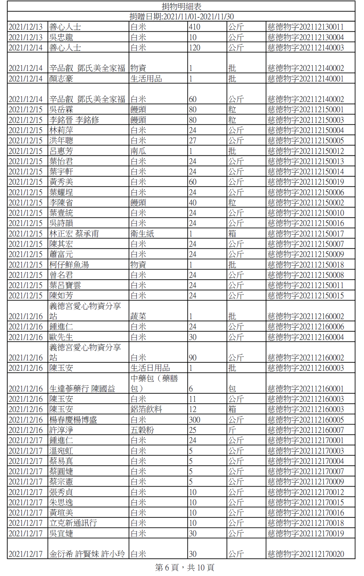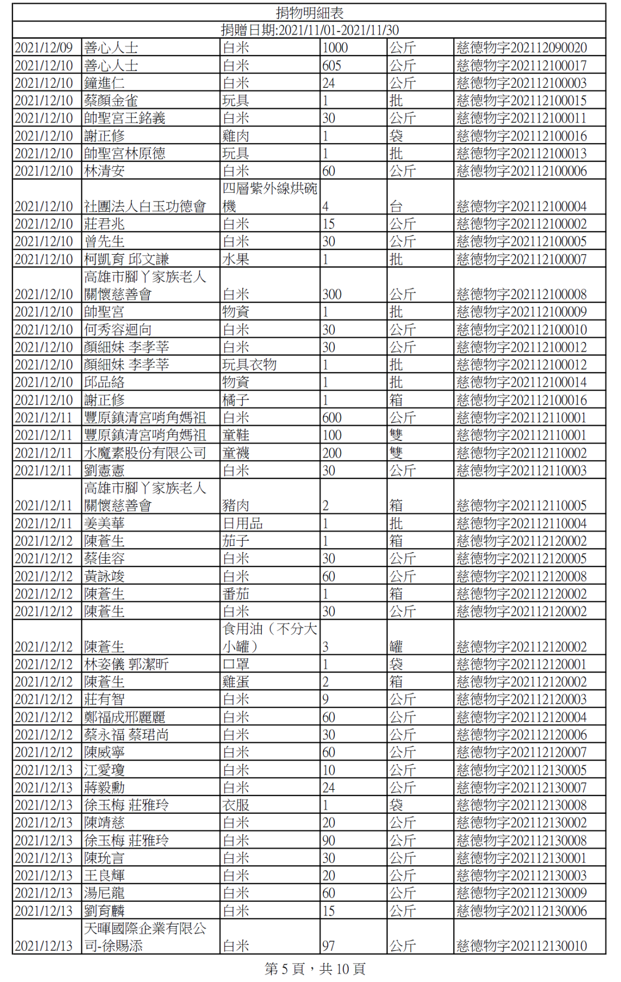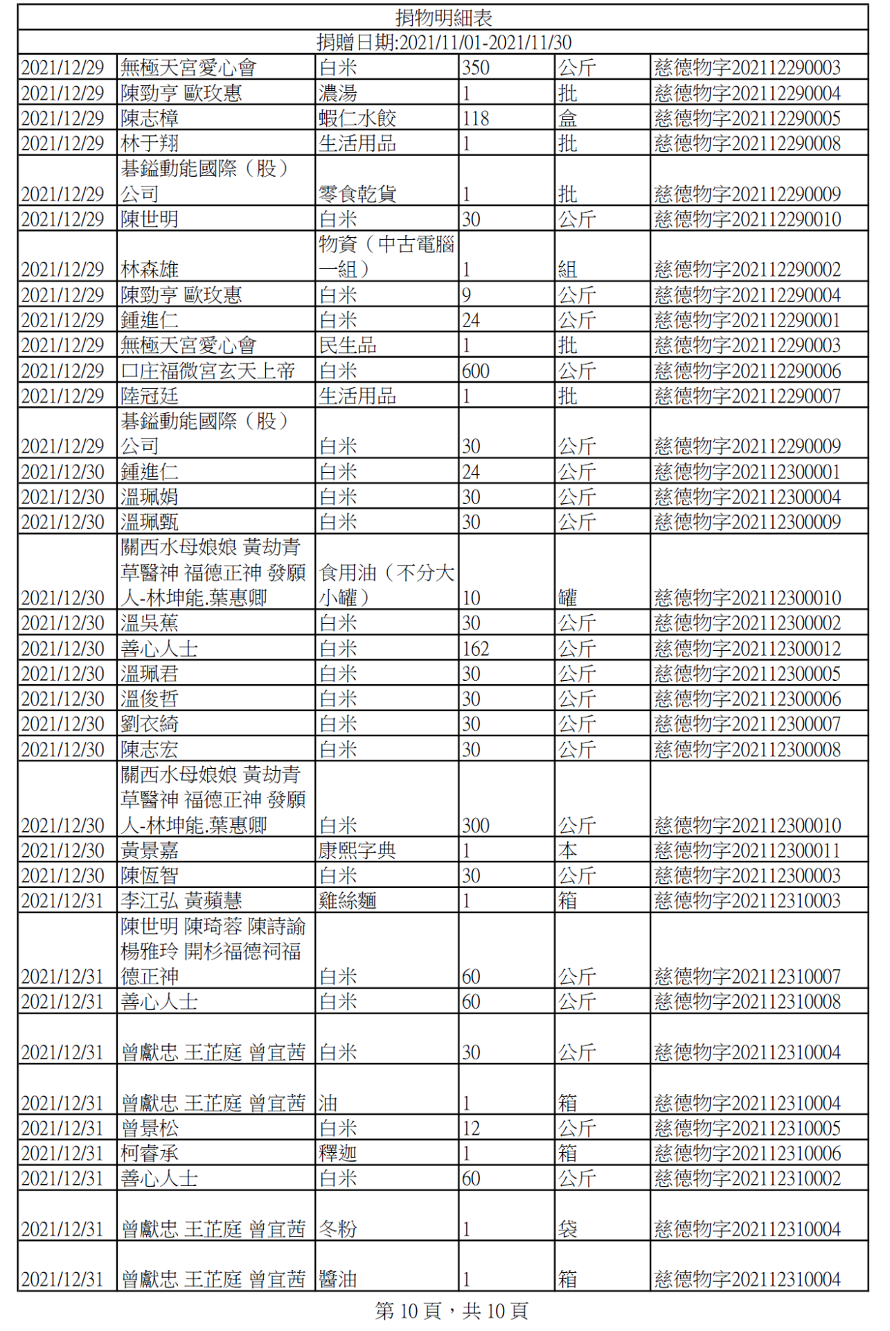 110年12月捐物明細
