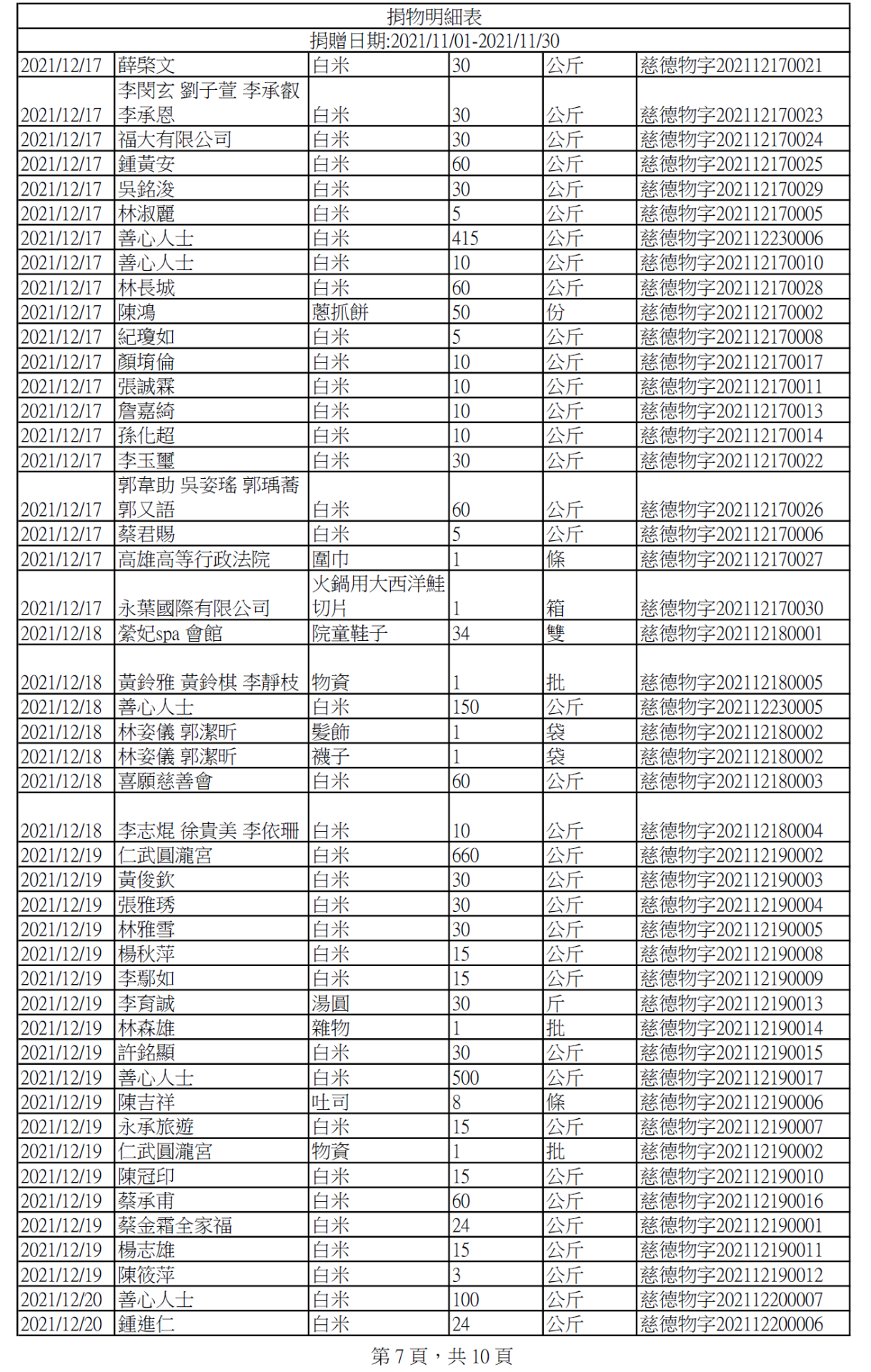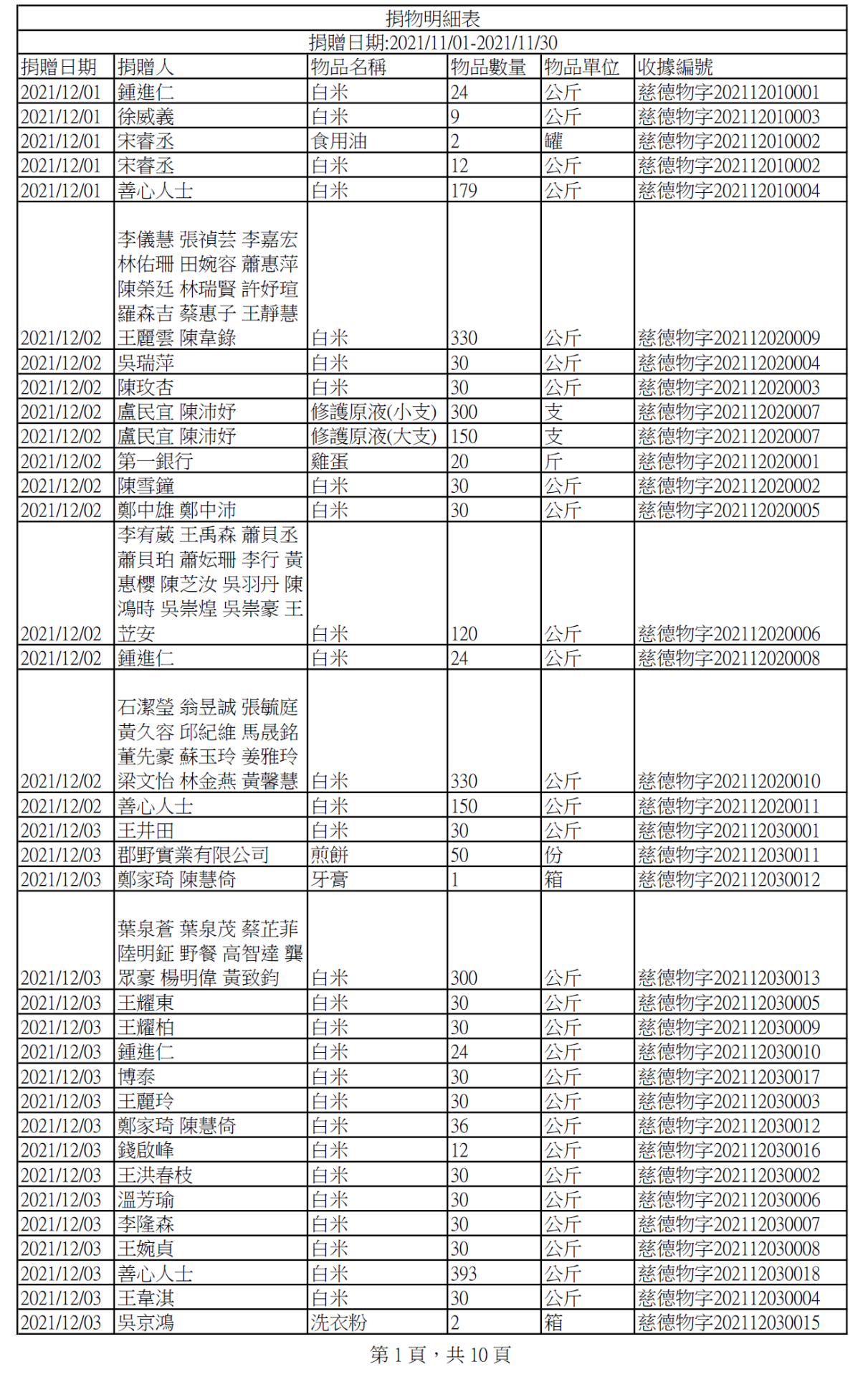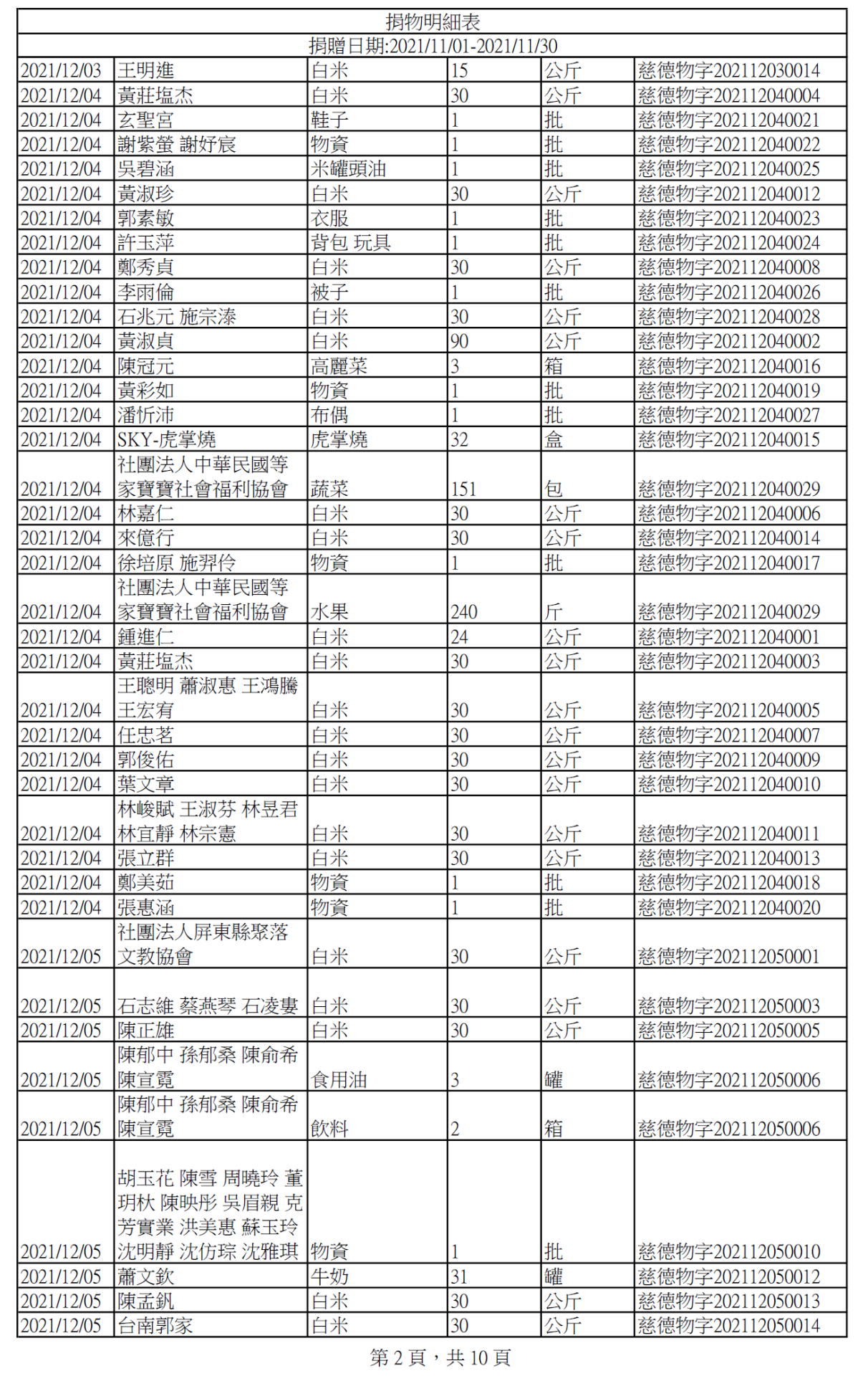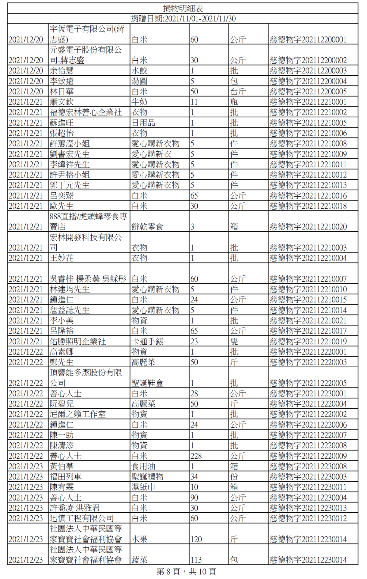 110年12月捐物明細
